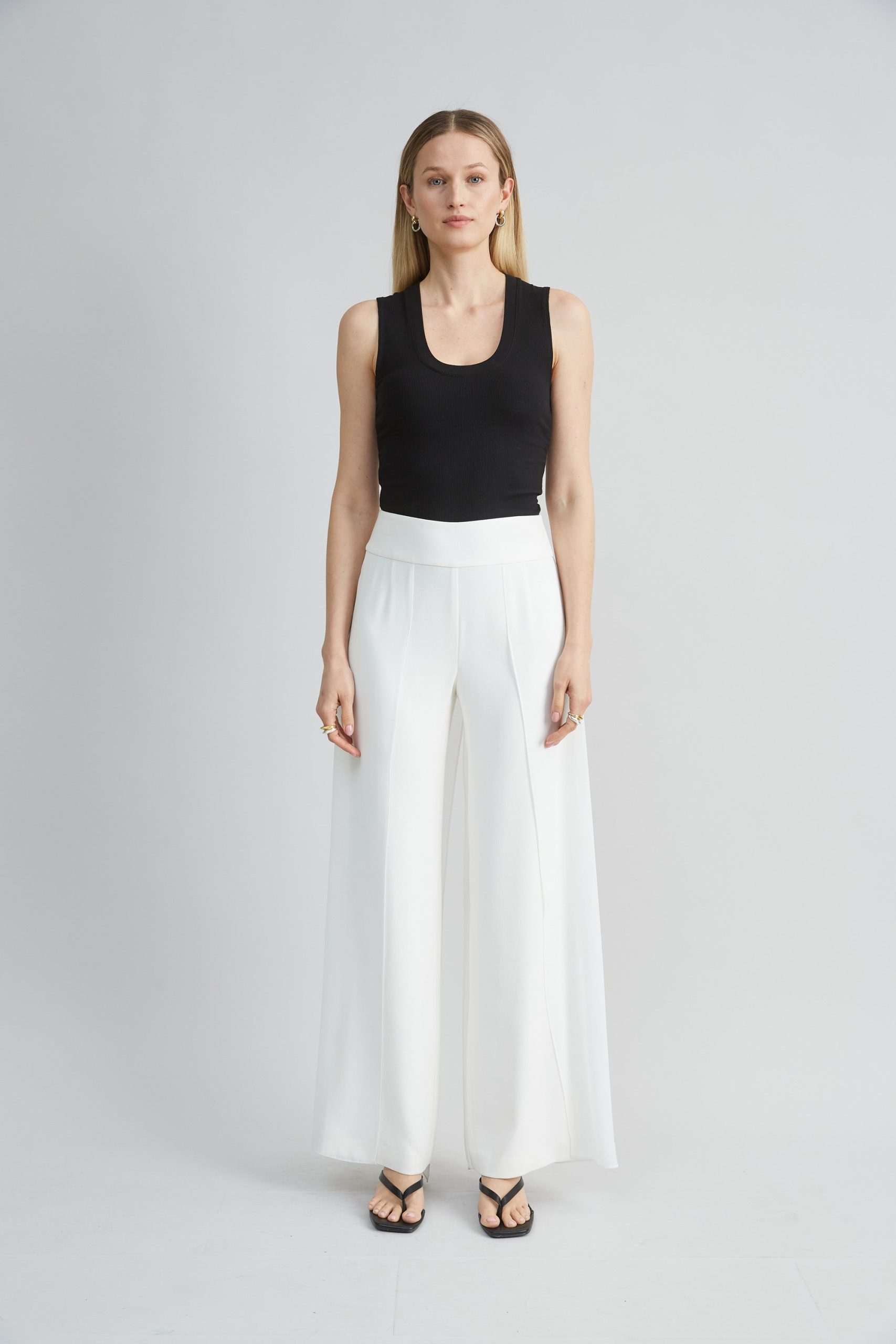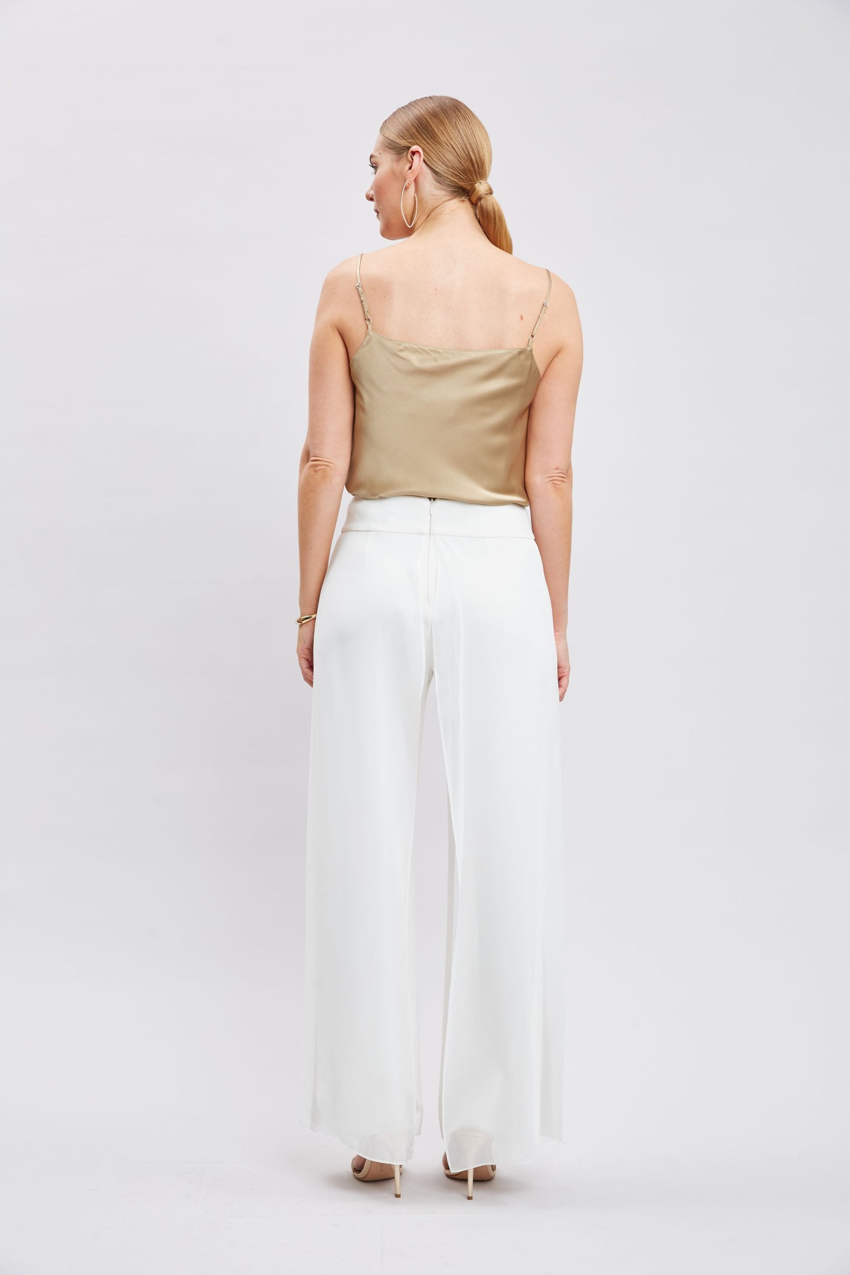 Our free-flowing pant is the pant your closet has been longing for. The Fluid Crepe pant has a Georgette Panel overlay – perfect for dressing up or down. Consider this a seasonless addition to your closet.
