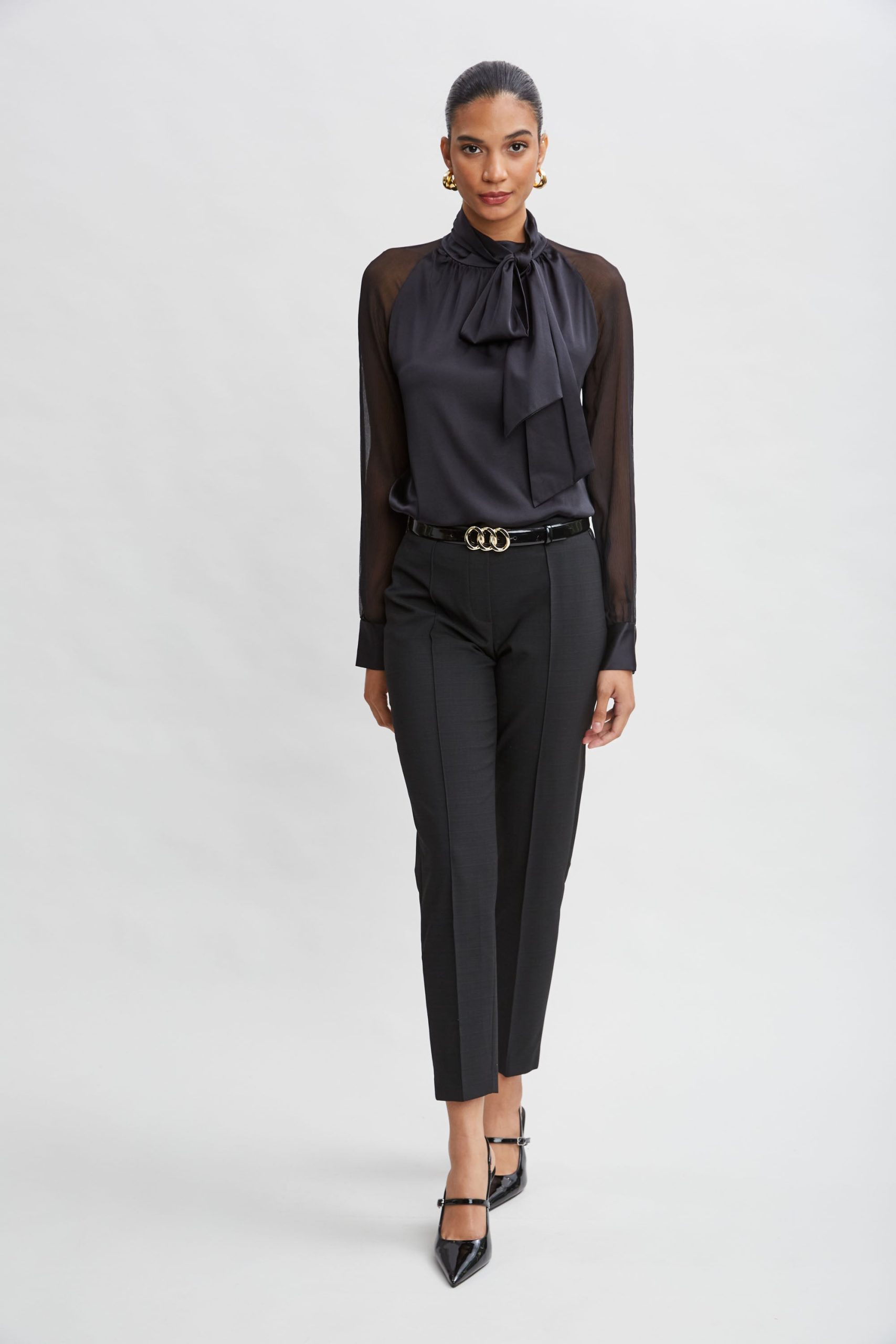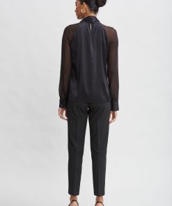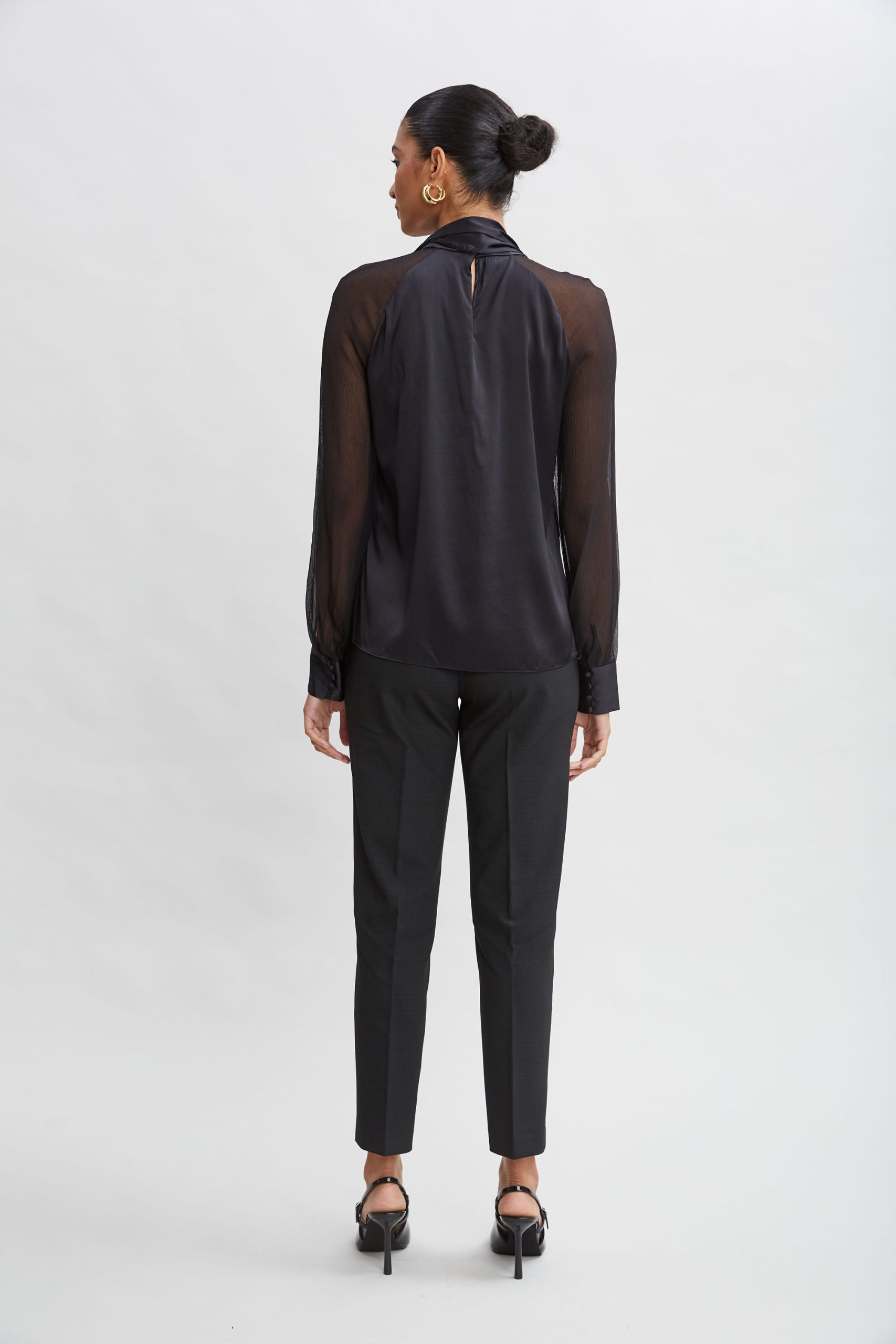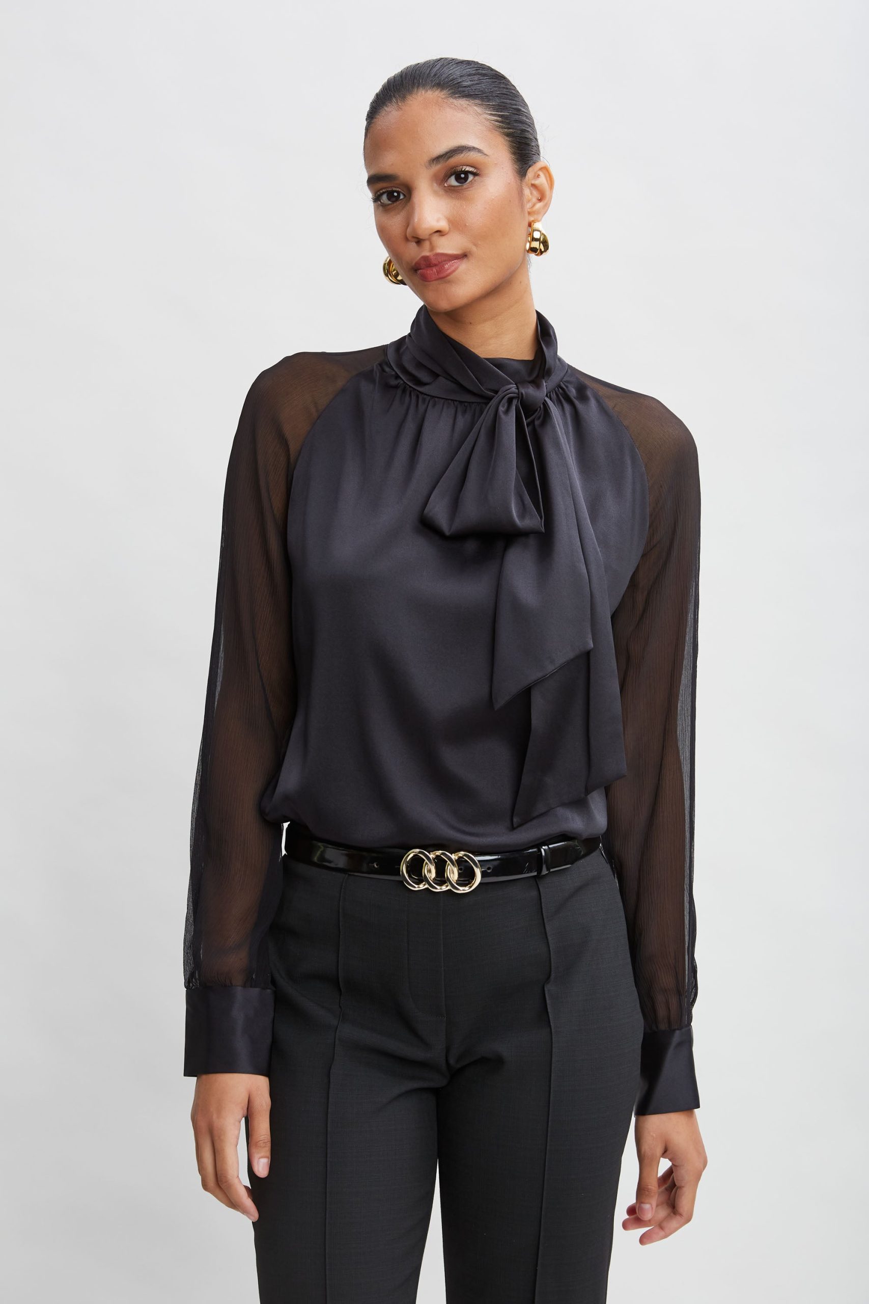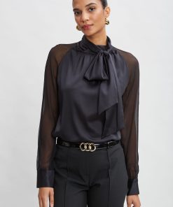 Elie Tahari Women’s Chiffon Sleeve Silk Satin Tie Shirt | Black