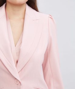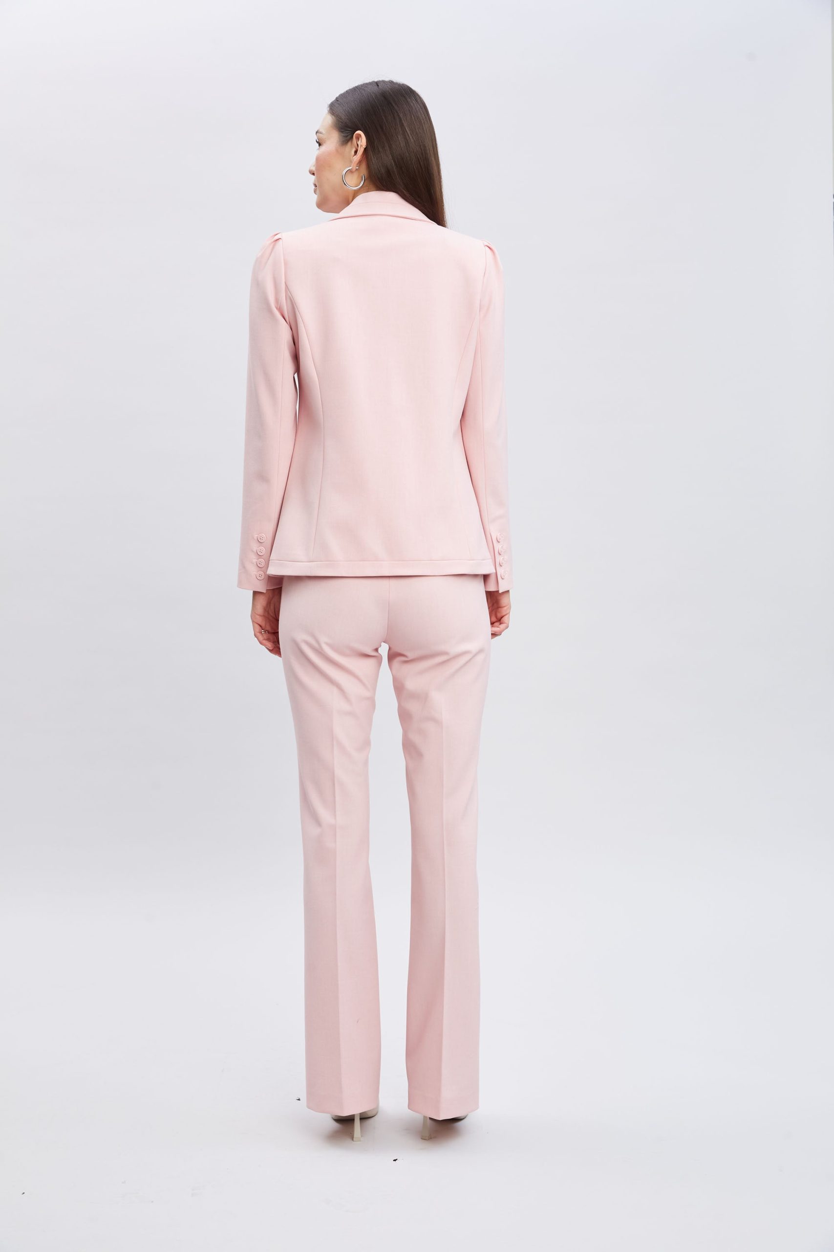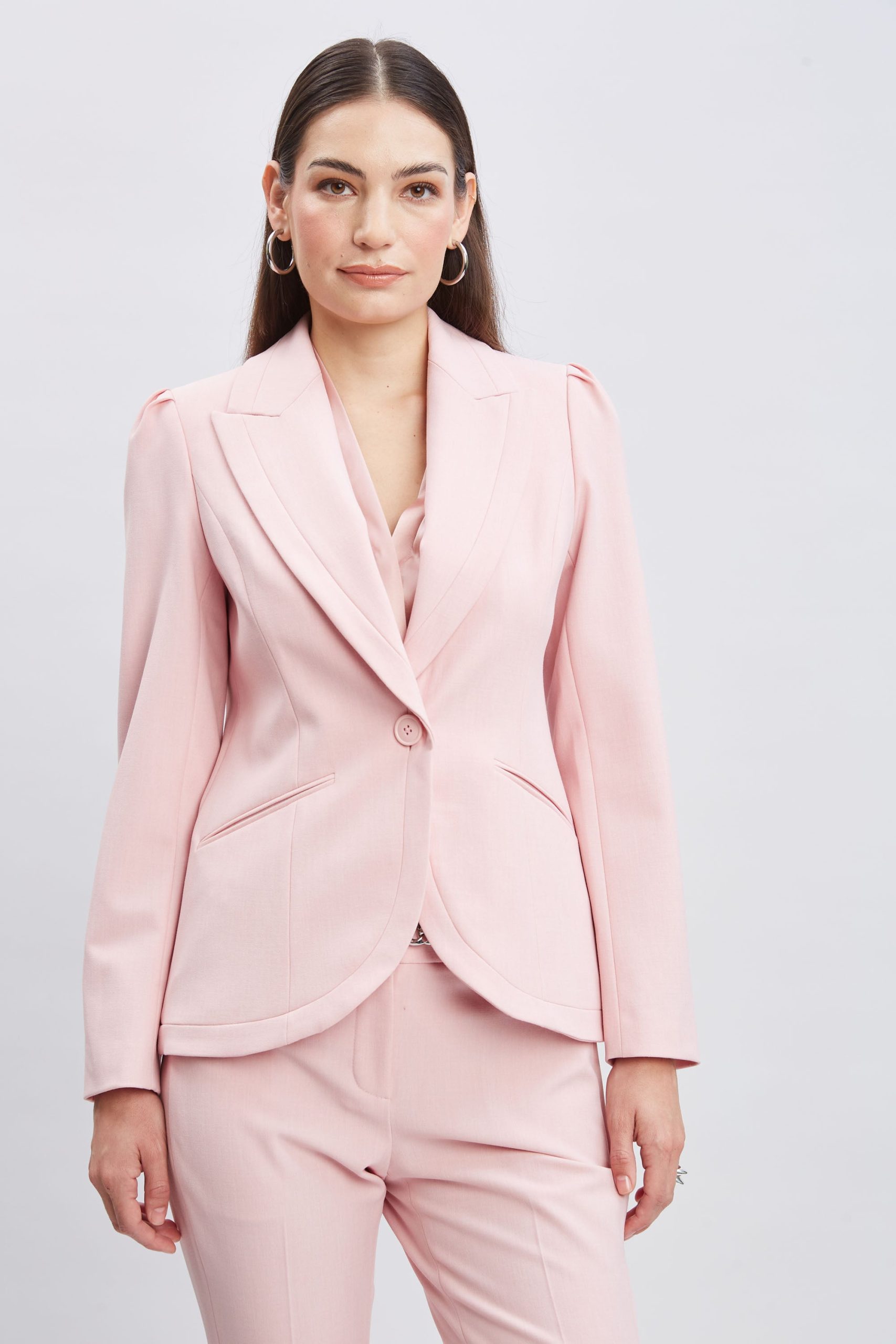 Meticulously tailored, polished, and modern, our single-breasted blazer has pleat detail shoulders, peaked lapels & dart detailing. The contour lines & flattering button placement lend a body skimming silhouette. This blazer has the cool factor you are looking for. Pair it with its matching pant for a sleek monotone column or wear it as a separate.