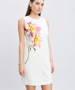 Meet Spring’s must have dress! The artistry of the dramatic botanical flower compliments the chic silhouette of this modern shift dress. It’s perfect for day to dinner or wherever your day leads you.