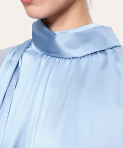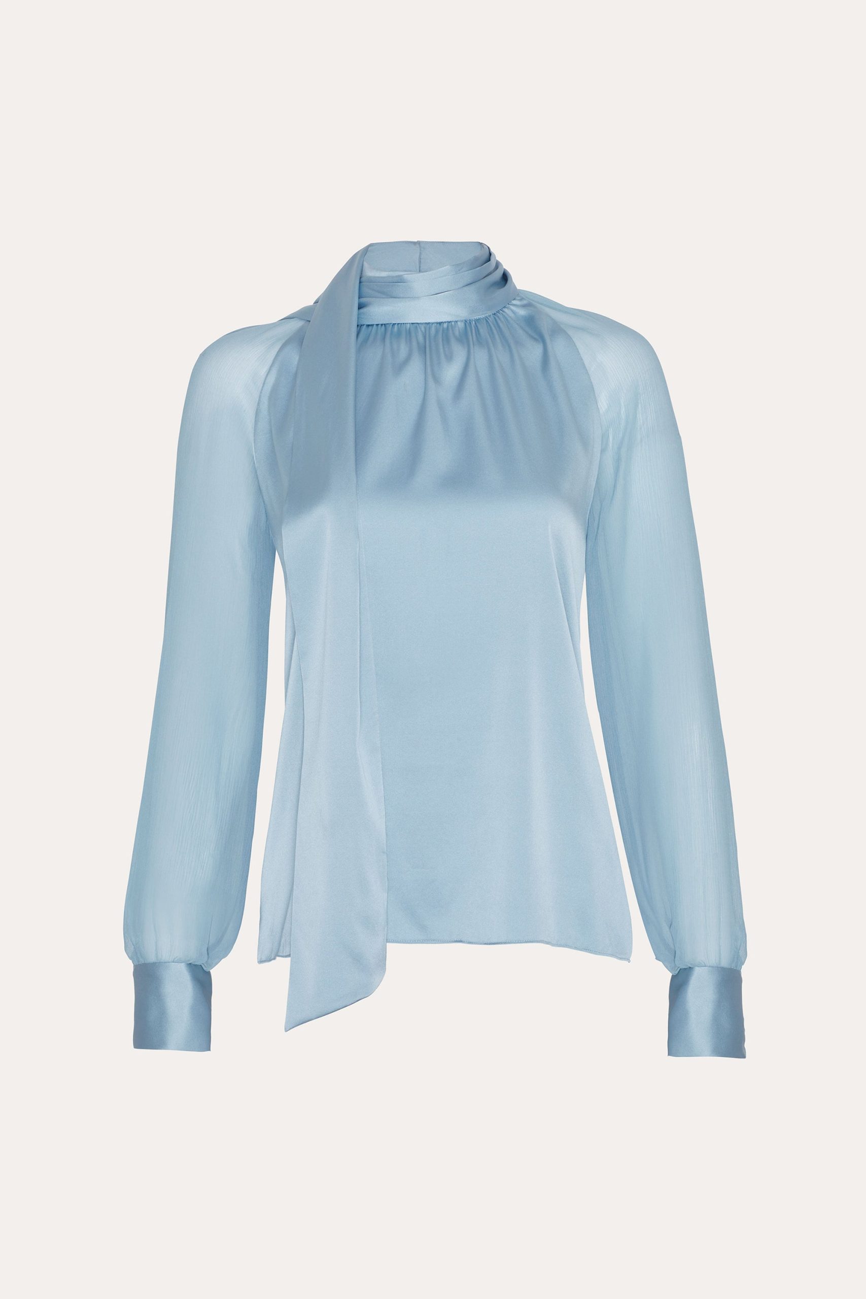 It’s all in the details! Chic & modern, the Tie neck & transparent chiffon sleeves of our luxe Silk Satin shirt give it an artistic edge. Dress it down with jeans or up with Crepe or Satin Pants.