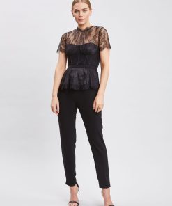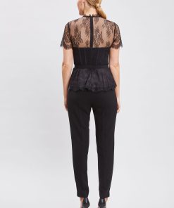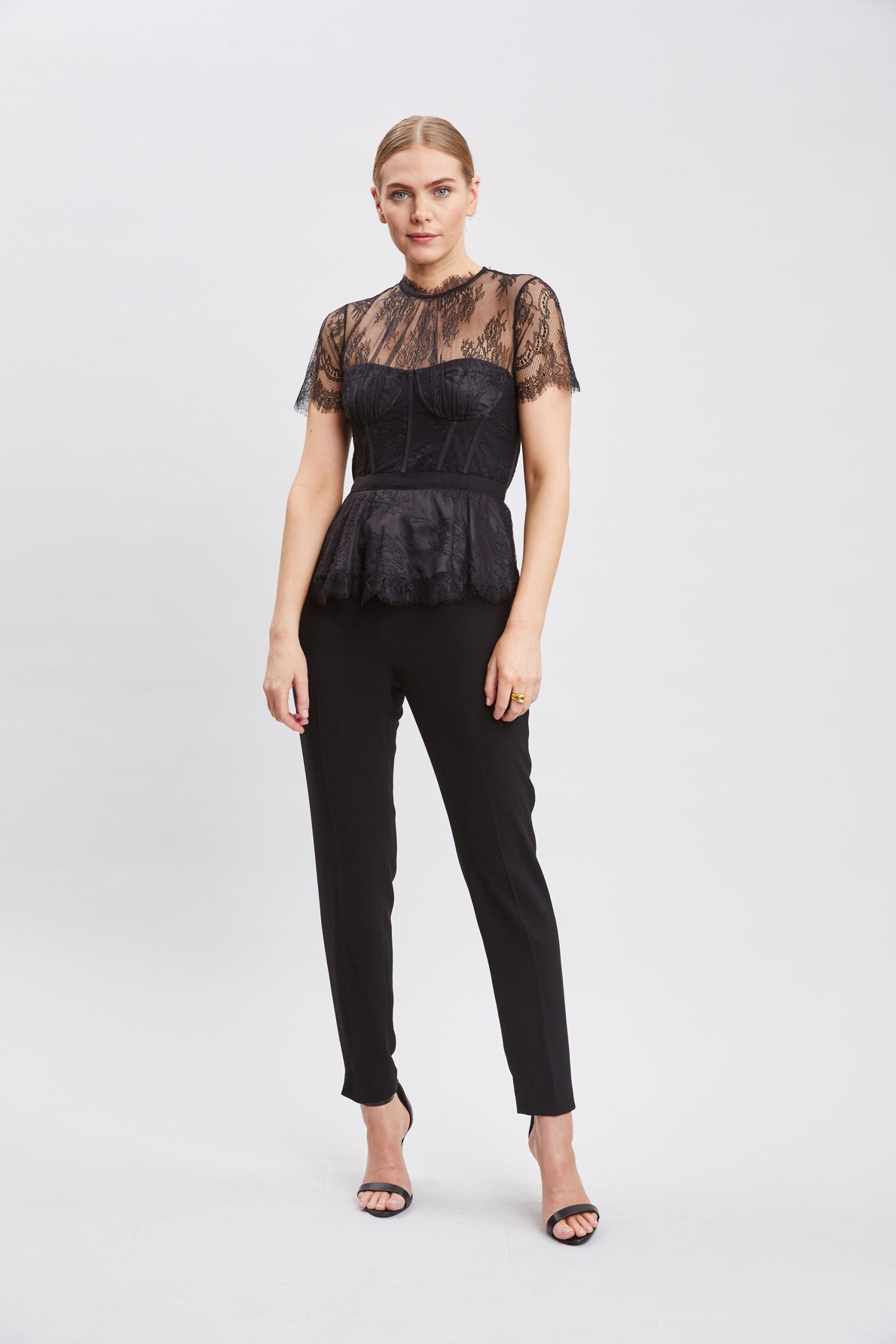 Short Sleeve Lace Top with a mock neck & peplum silhouette