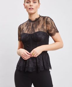In a delicate romantic lace, this shirt has a cool vibe that will work overtime in your wardrobe. The contour boning lined bodice, scalloped hem & mock neckline give it a designer edge and make it perfect for wearing day to date night.
