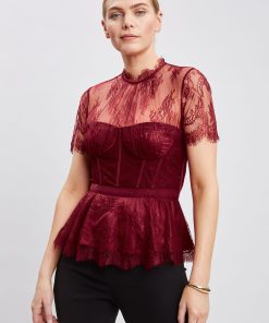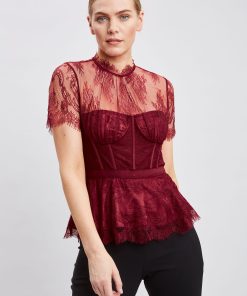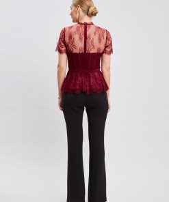 Short Sleeve Lace Top with a mock neck & peplum silhouette