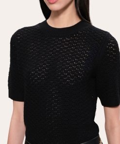 Rendered in superfine Merino Wool with a smooth, ultra-soft hand, this short-sleeved sweater is traced with intricate openwork weave—an interplay of geometry, air, and edge.