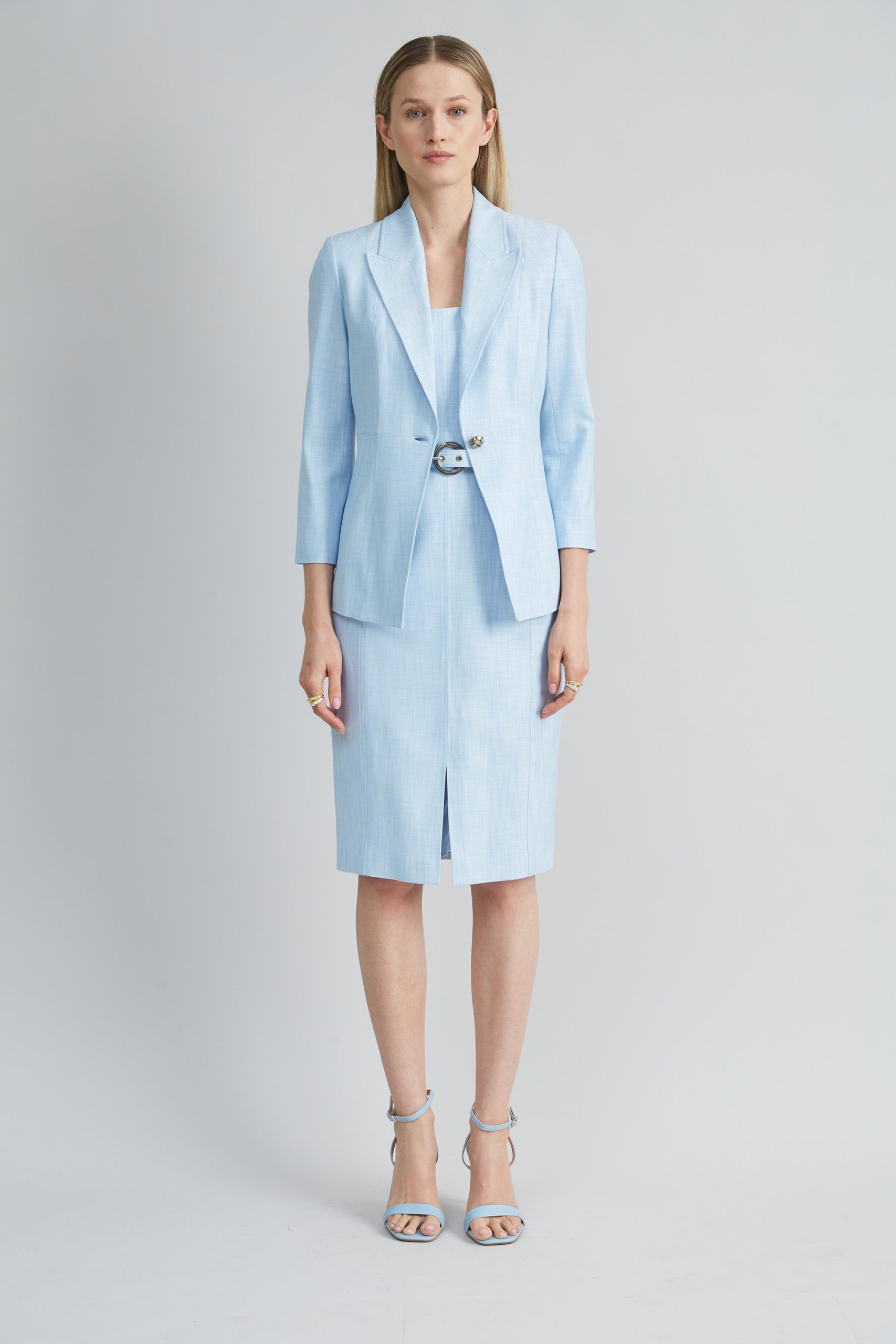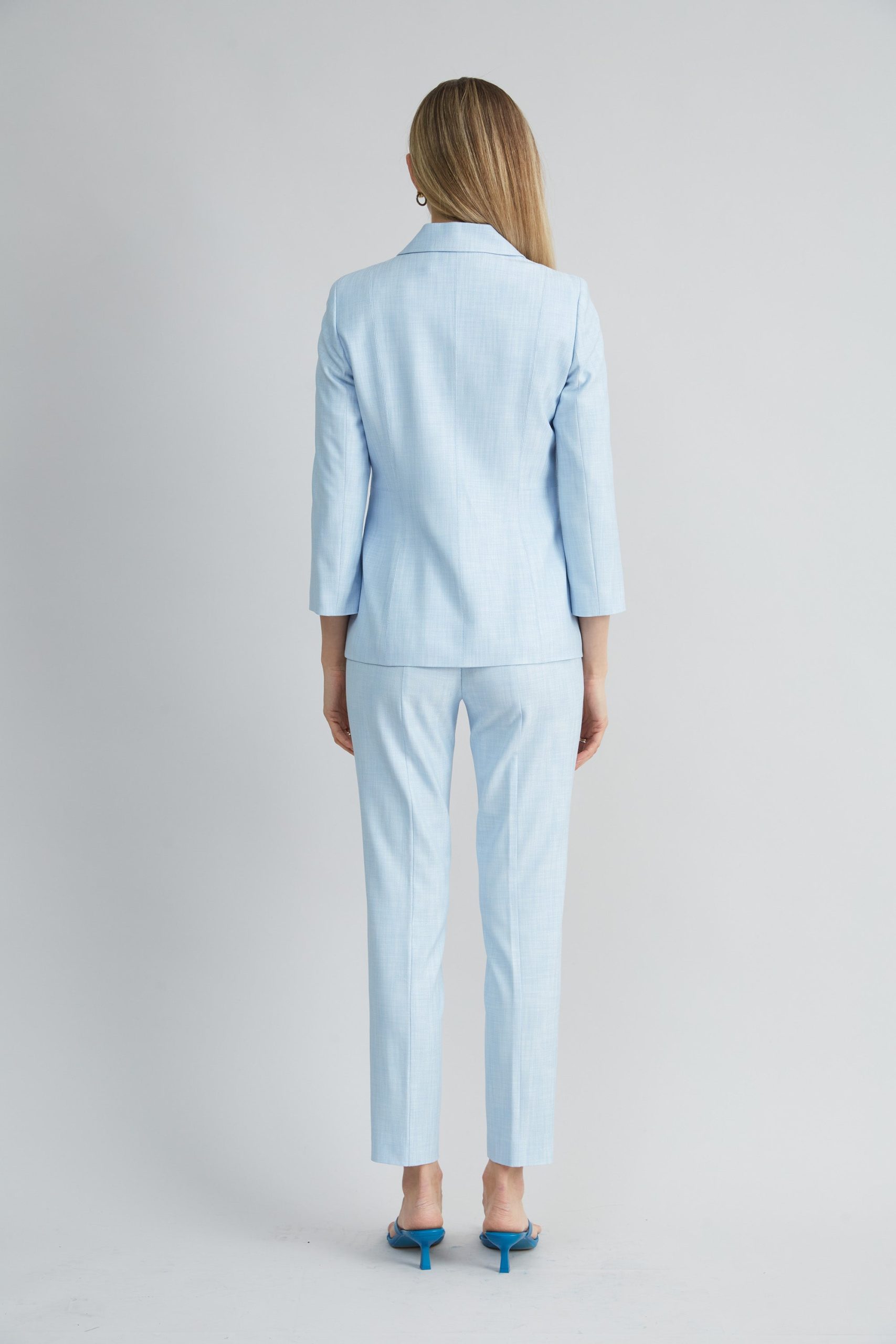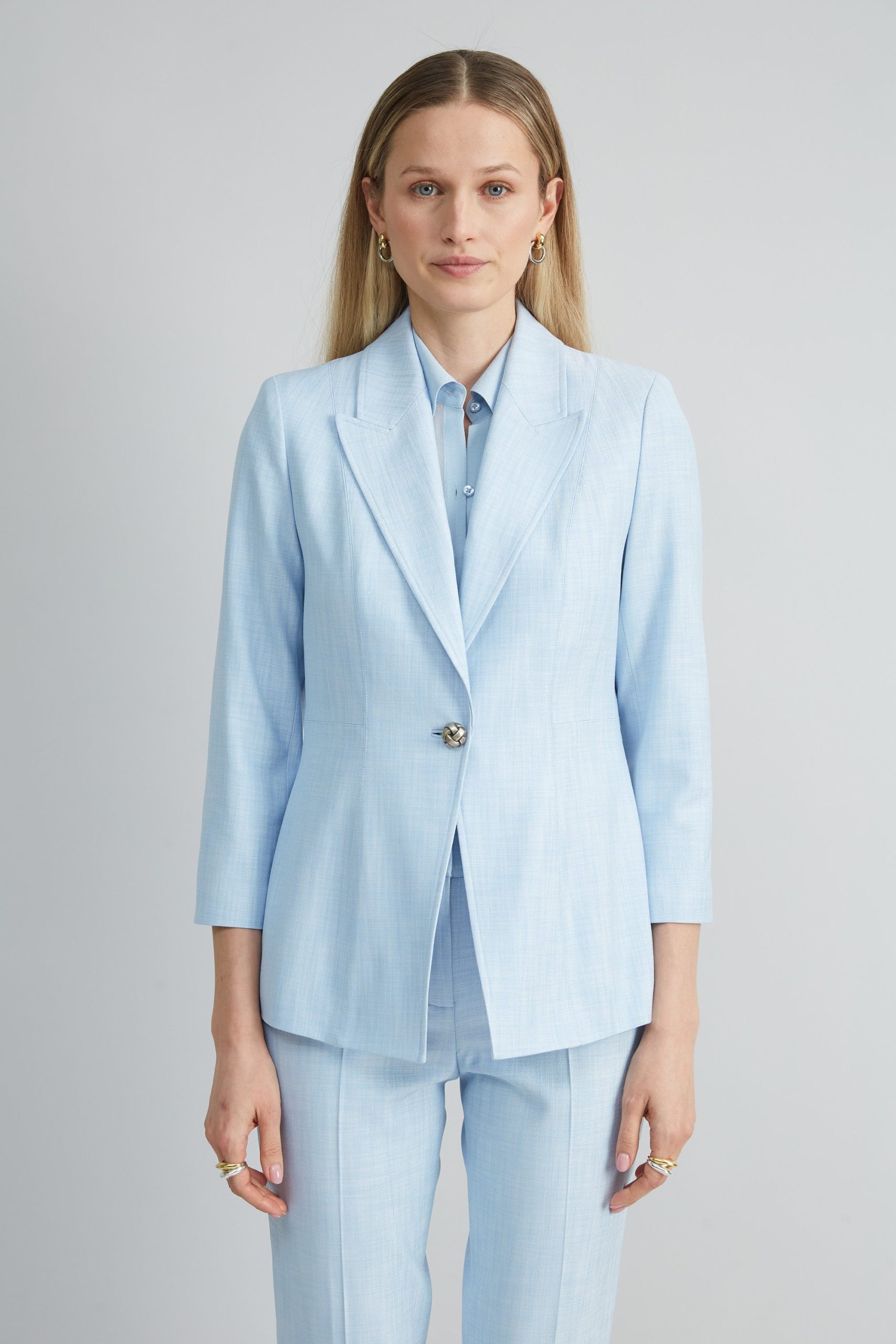 Tailored in an airy mélange fabric, our single button blazer features a knotted weave metal button & three-quarter sleeves. Single Breasted & meticulously crafted, this blazer is perfect for warmer months.