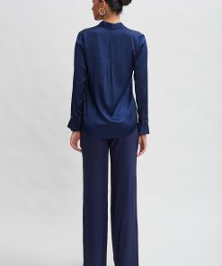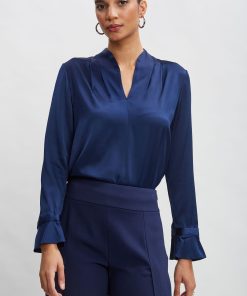 Effortlessly chic, this shirt is destined to become a favorite. Luxurious Silk Satin elevates this minimalist top. With its contour neckline, soft pleat detail & tiered ruffle cuffs, this essential piece will take you from Fall to Spring.