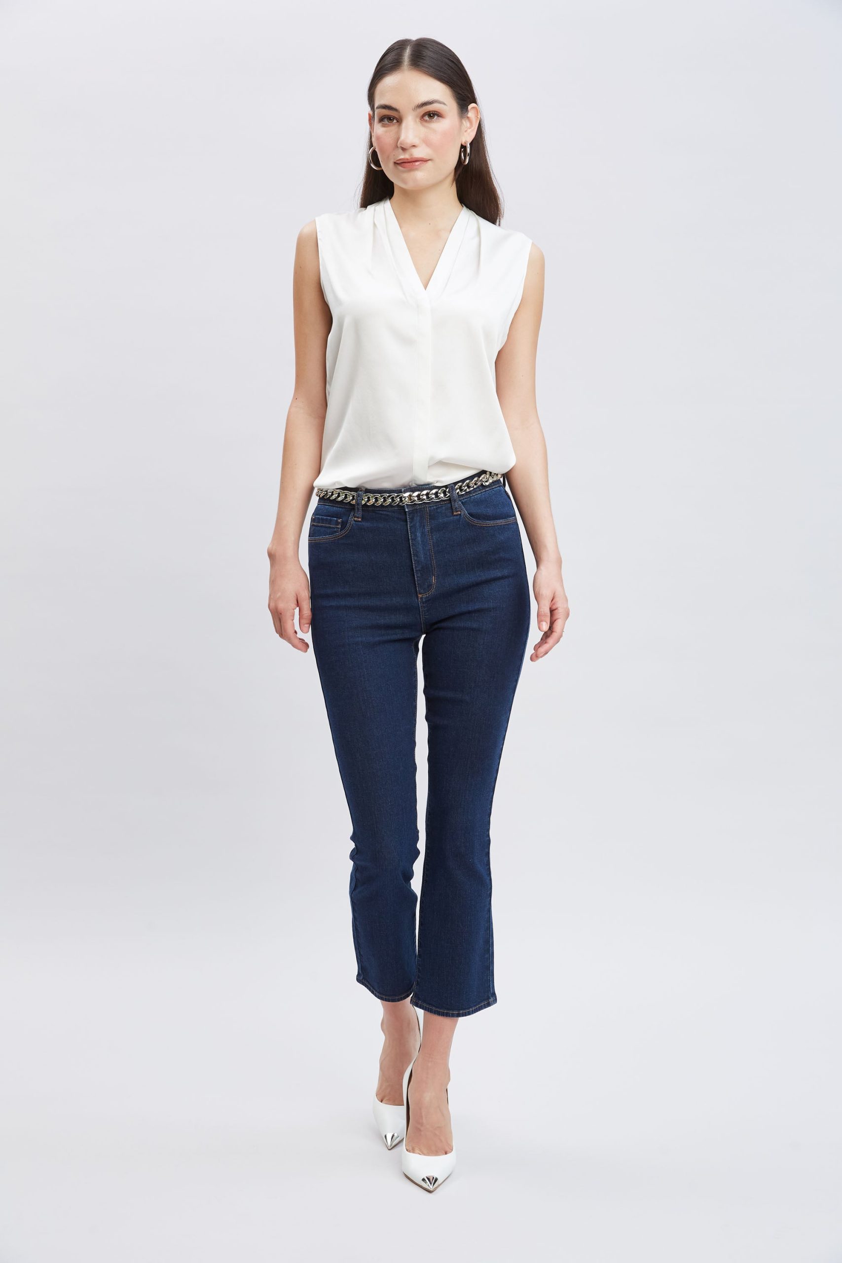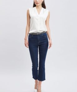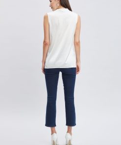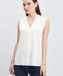Sleeveless Silk Satin Button Down Shirt with Hidden Placket